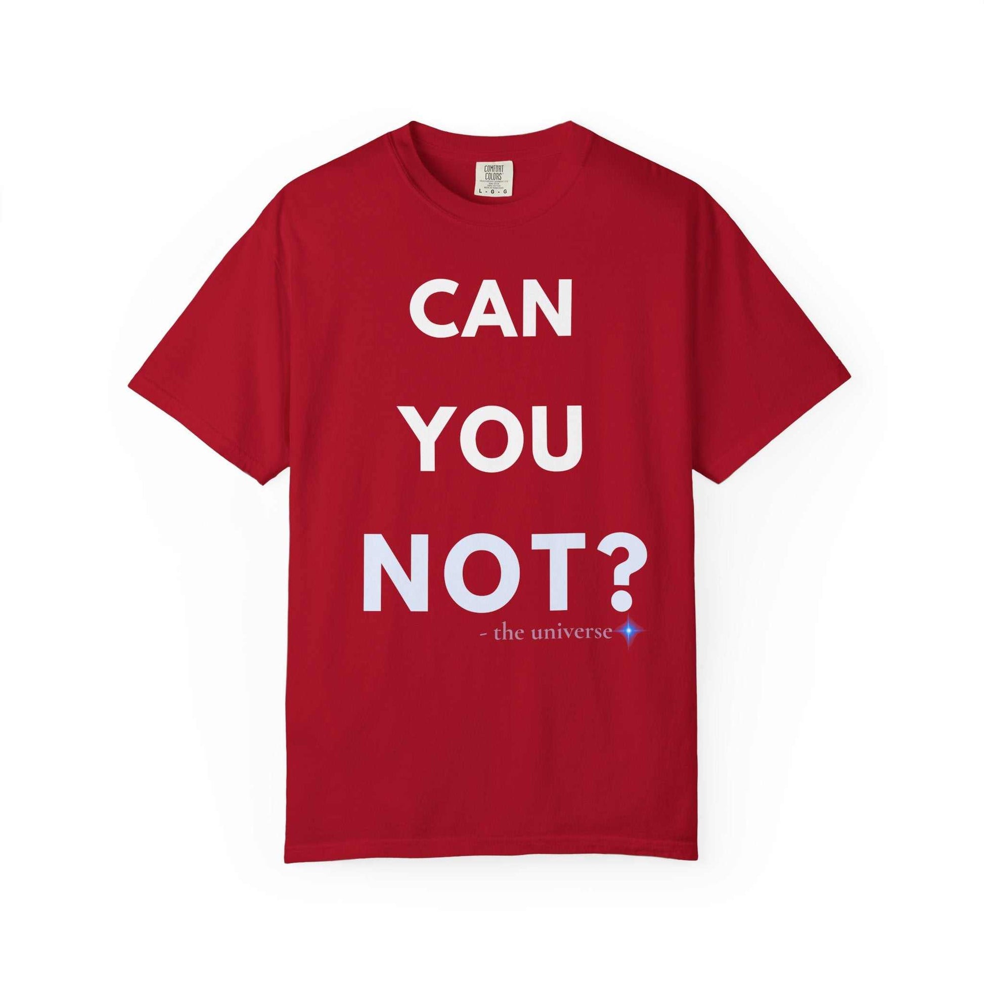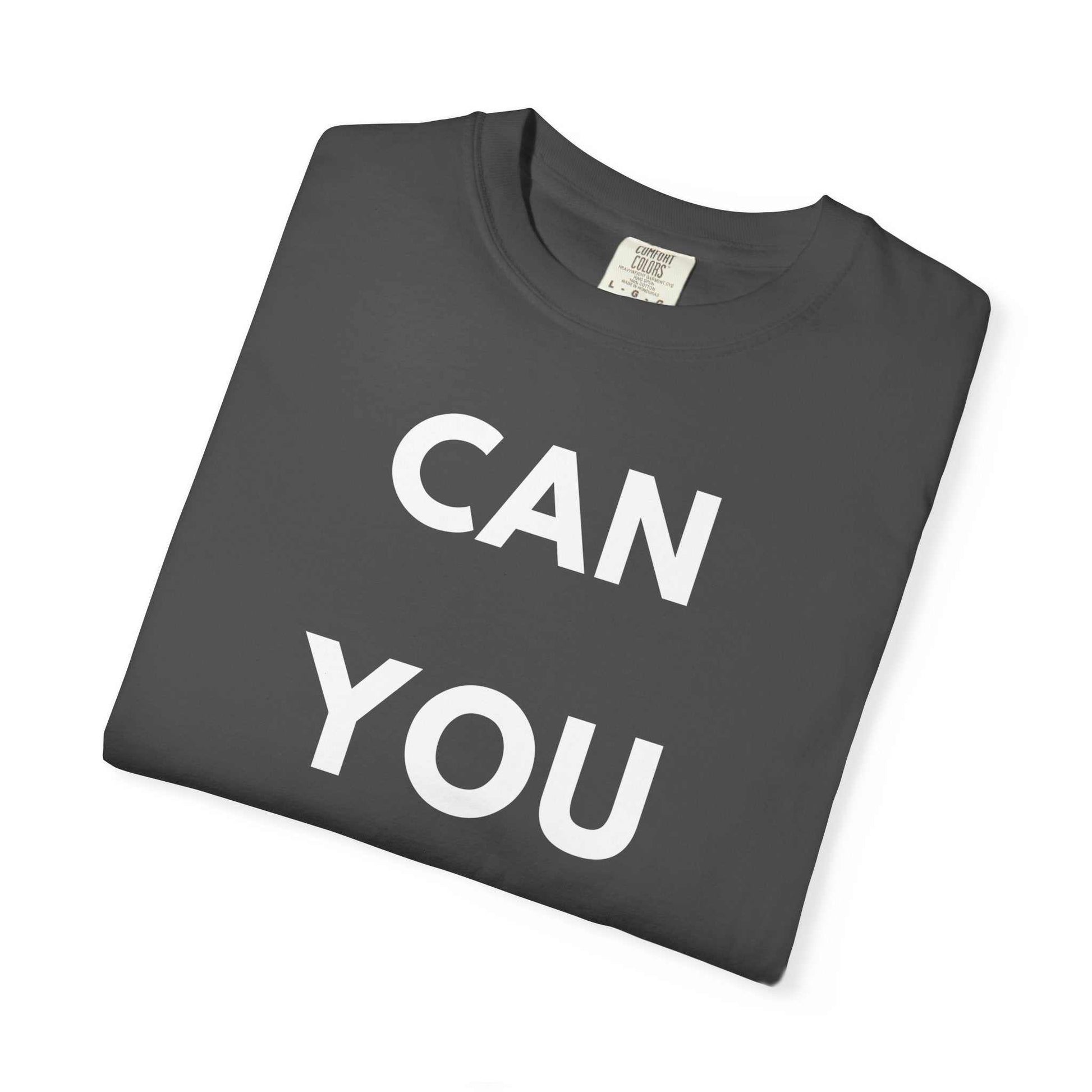 Lightweight, lived-in comfort with a voice. This garment-dyed tee wears like an old favorite from the first wear — soft, slightly faded color and a relaxed cut that keeps movement easy. The front reads “CAN YOU NOT?” in bold, confident type, a quick-witted way to set a boundary or share a dry laugh without saying a word. It's the kind of shirt you reach for on slow mornings, long drives, or casual meetups when mood and comfort matter more than effort. Pair it with worn denim, a beanie, or a flannel tied at the waist to complete a quietly bold look that sits comfortably between sarcasm and sincerity.