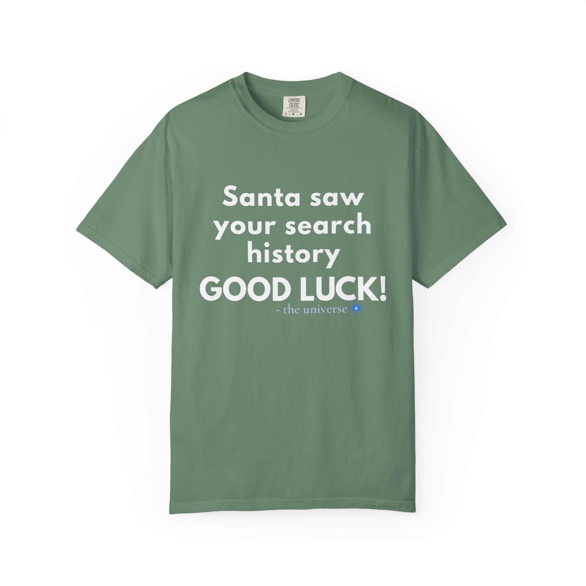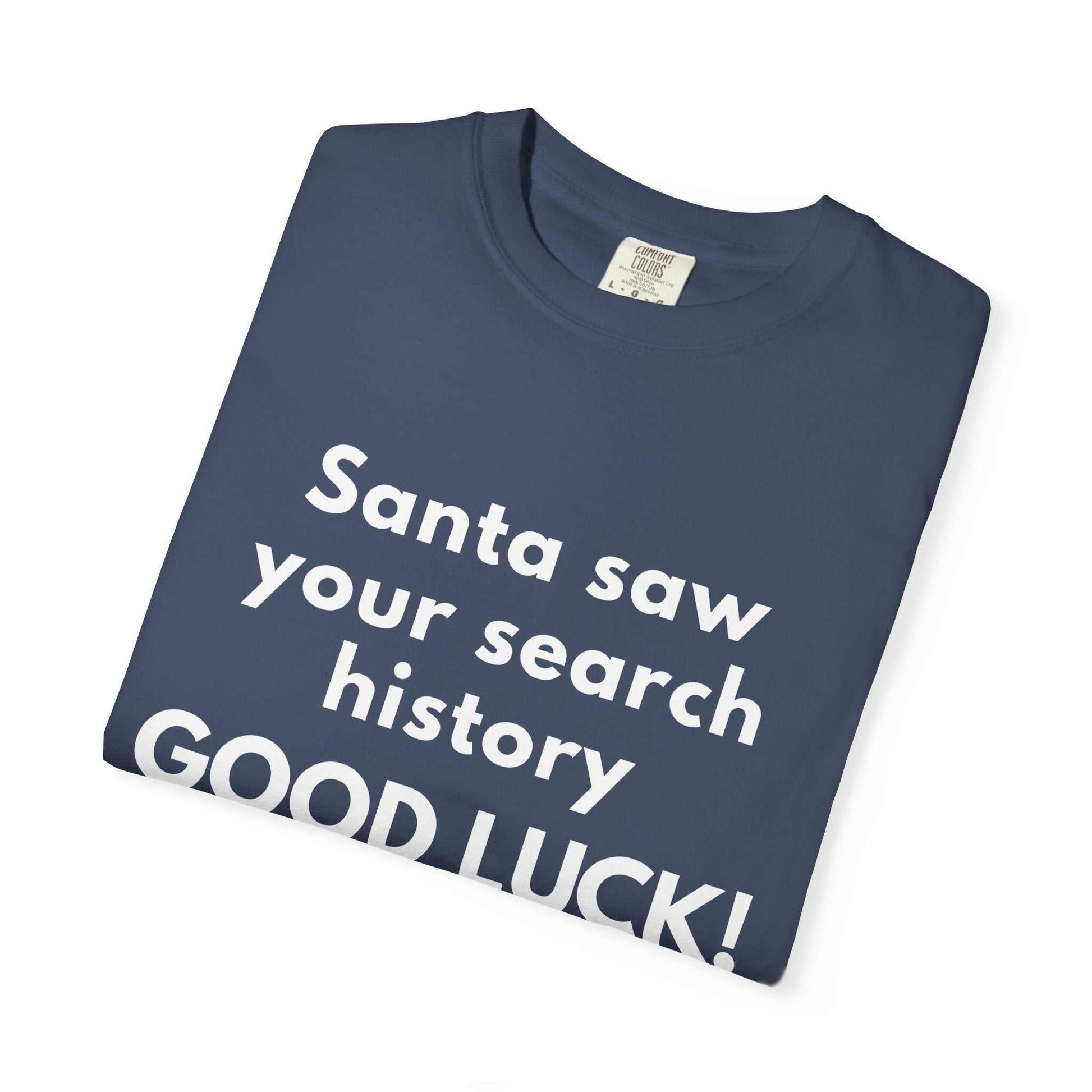 Funny Christmas T-Shirt — "Santa Saw Your Search History — Good Luck!"